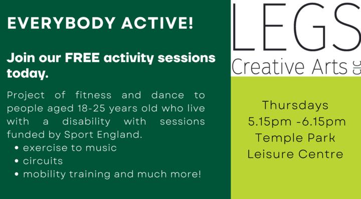 Our currently funded projects reach County Durham and South Tyneside, get in touch for details. ‘Little Legs’ with sessions for children in Wheatly Hill message james@legscreativearts.com for availability and timetable and ‘Every-body Active’ which is a brand-new project funded by Sport England. We’re delivering a project of fitness and dance to people aged 18-25 years old who live with a disability, with sessions in Temple Park Centre in South Shields and Hebburn Central in Hebburn.
